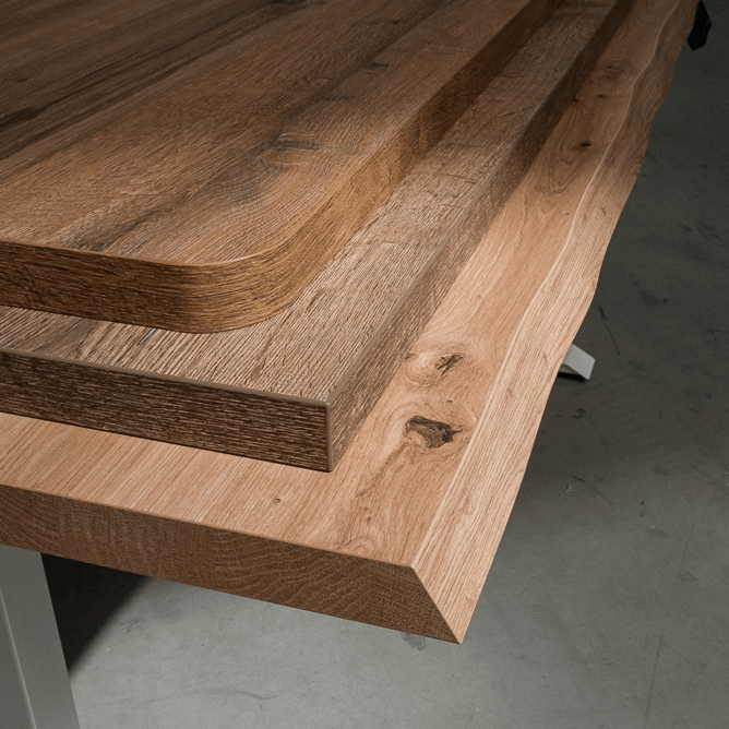 Minden asztallapot saját, európai asztalosműhelyünkben gyártunk, a faanyagot pedig gondosan válogatjuk a bevált cseh beszállítóktól. Az eredmény egy olyan asztallap, amely megőrzi formáját, nem vetemedik, és még évekig tartó intenzív használat után is megtartja élét és színét. Minták és színek széles választékát és 3 különböző vastagságot kínálunk.